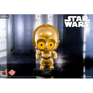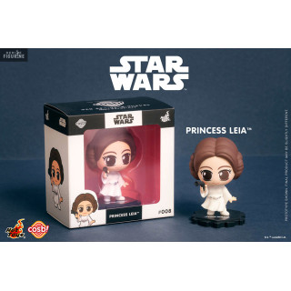 Figurine officielle au choix entre la Princesse Leia, Luke Skywalker, Han Solo, C-3PO, R2-D2, Dark Vador, Stormtrooper ou Boba Fett en PVC mesurant environ 8 centimètres de haut. Elle est issue de la collection Cosbi. Le fabricant est Hot Toys.