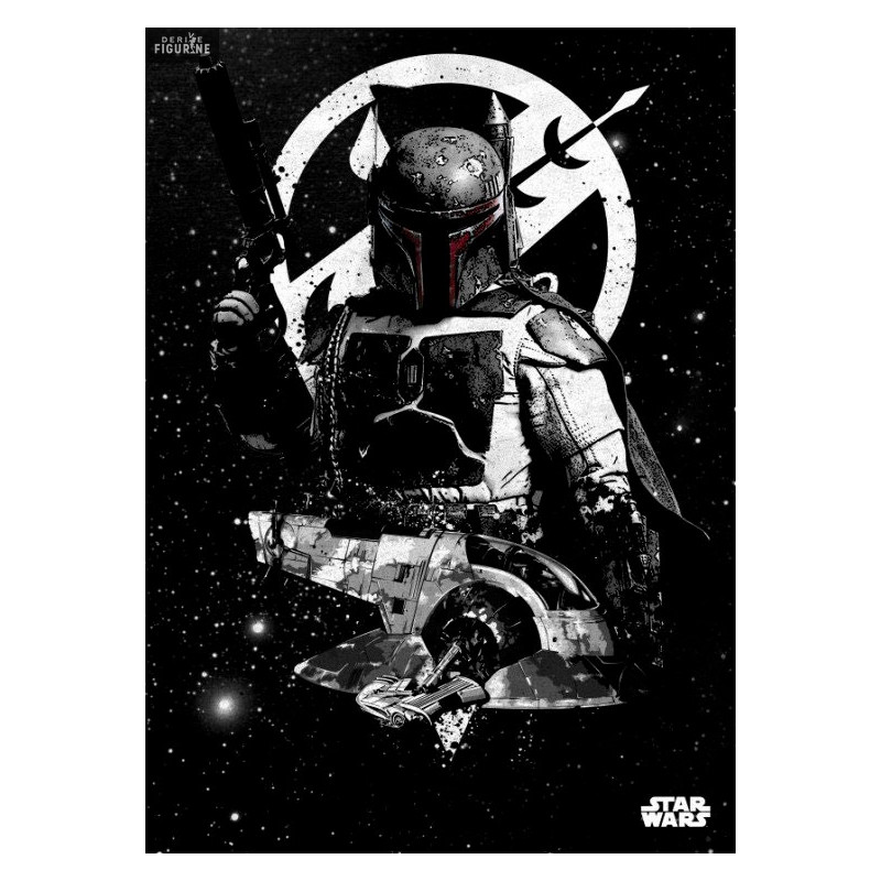 Ce poster n'a que des points positifs pour lui. Le premier, et pas des moindres est le fait qu'il soit très simple à accrocher. Il suffit de coller l'aimant fourni avec sur le mur. Le second est tout simplement le fait qu'il soit vraiment beau. Entre Boba Fett, son vaisseau et les nombreuses étoiles, l'image est très réussie.