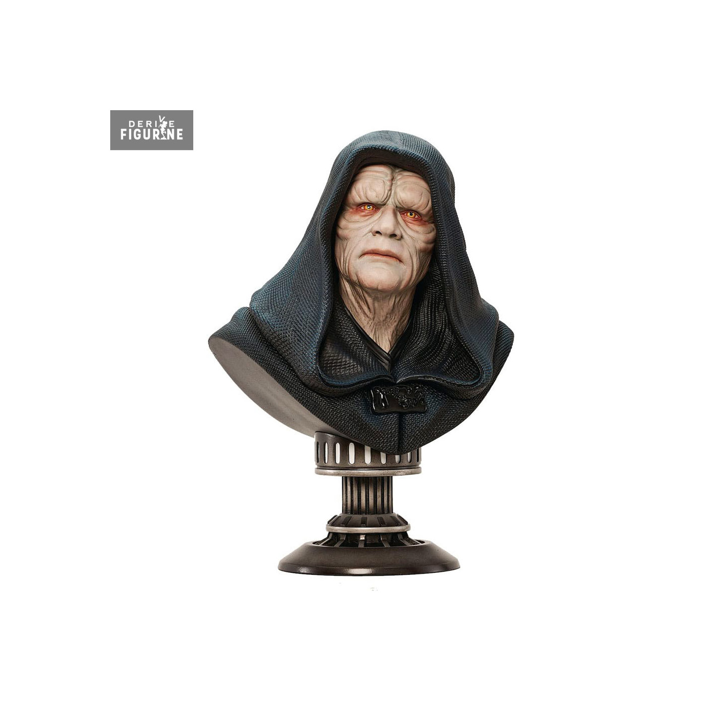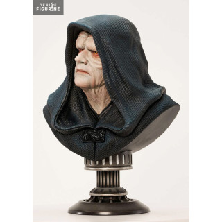 Buste officiel de Emperor Palpatine en résine mesurant environ 25 centimètres de haut, à l'échelle 1/2. Il est issu de la collection Legends in 3D. Le fabricant est Diamond Select Toys.