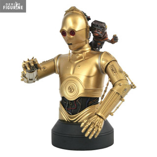 Buste officiel de C3PO & Babu Frik en résine mesurant environ 15 centimètres de haut, à l'échelle 1/6. Le fabricant est Gentle Giant.