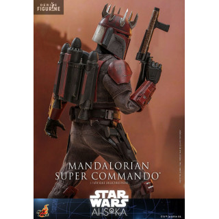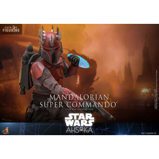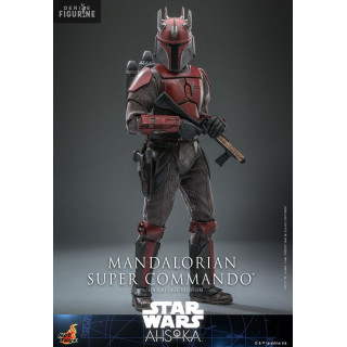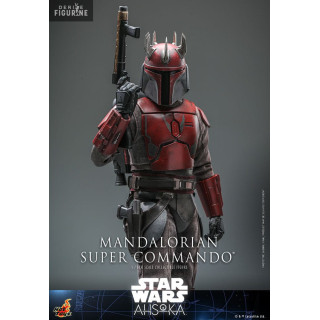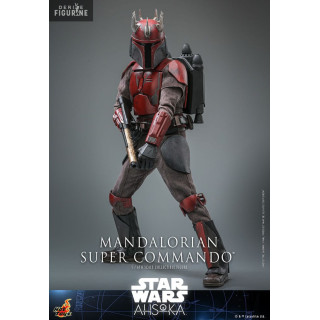 Figurine officielle de Mandalorian Super Commando mesurant environ 31 centimètres de haut, à l'échelle 1/6. Le fabricant est Hot Toys.