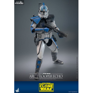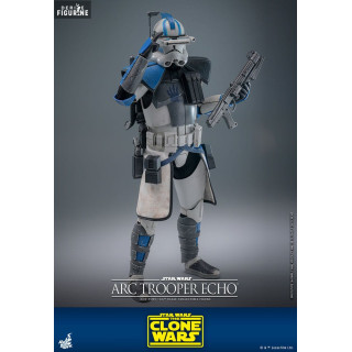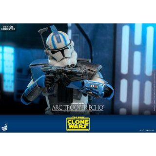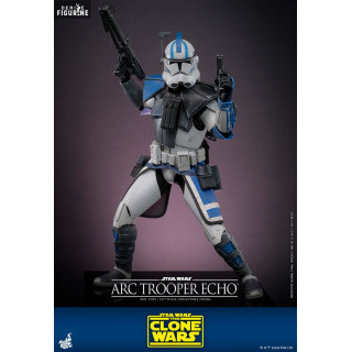 Figurine officielle de Arc Trooper Echo mesurant environ 30 centimètres de haut, à l'échelle 1/6. Le fabricant est Hot Toys.