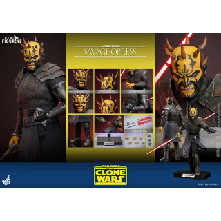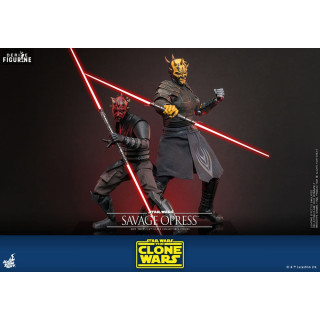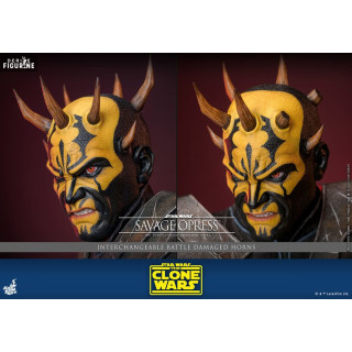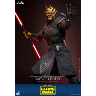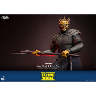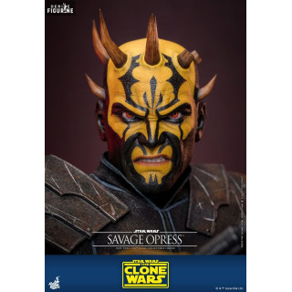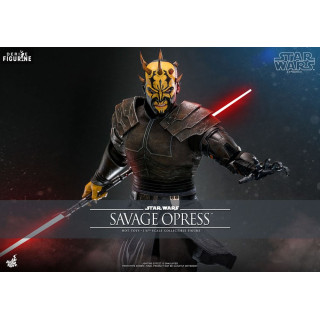 Savage Opress est l’un des personnages les plus imposants et redoutables de l’univers Star Wars, apparu dans la série animée Star Wars : The Clone Wars. Sauvage et brutal, il est le frère de Darth Maul et a été formé par le comte Dooku dans les arts obscurs de la Force. D'origine Dathomirienne, Savage est un Zabrak qui, après avoir subi des manipulations magiques des Sœurs de la Nuit, a vu sa force et sa férocité augmentées de façon surnaturelle. Ce processus a non seulement amplifié sa stature physique, mais a également transformé son esprit, le rendant encore plus obéissant aux forces du côté obscur. Devenu l'un des apprentis de Dooku, il n'a cependant jamais perdu son désir de retrouver et d’aider son frère Maul, avec qui il forme une alliance destructrice contre la République et les Jedi.