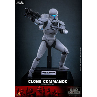 La figurine Clone Commando à l'échelle 1/6 de Hot Toys est une superbe représentation des commandos clones, personnages emblématiques de l'univers Star Wars, en particulier dans la série The Bad Batch. Ces soldats d'élite sont spécialement formés et équipés pour accomplir des missions périlleuses et se distinguent par leur armure renforcée et leur équipement high-tech, qui leur confèrent une allure imposante et menaçante. Les commandos sont conçus pour être plus autonomes, plus résistants et plus efficaces au combat que les clones standards, en faisant des figures redoutables au sein de l'armée de la République.