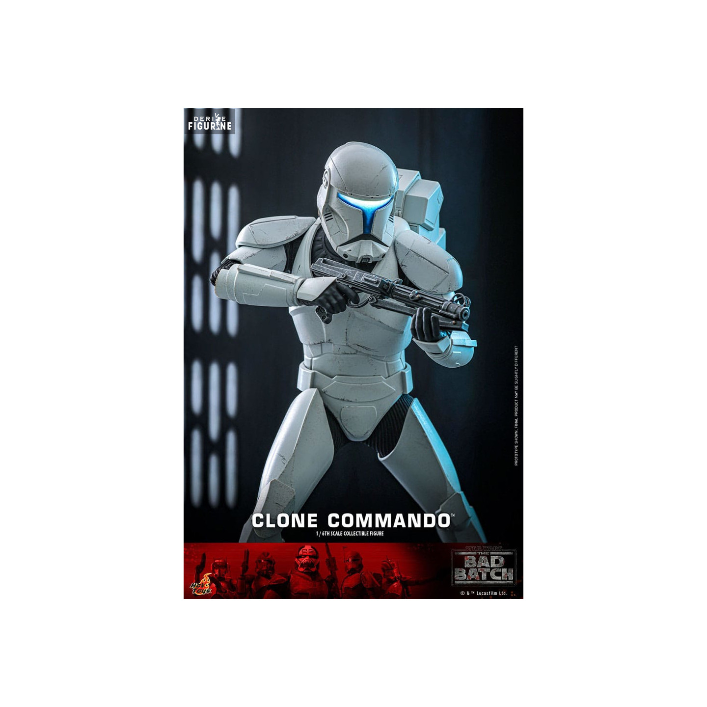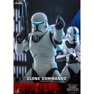 Figurine officielle de Clone Commando mesurant environ 30 centimètres de haut, à l'échelle 1/6. Le fabricant est Hot Toys.
