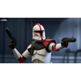 La figurine du Captain Fordo rend hommage à l'un des clones les plus distingués de la Grande Armée de la République dans l'univers de Star Wars. Le Captain Fordo, de son vrai nom ARC-77, est un soldat clone d'élite de la série Star Wars: Clone Wars, créée par Genndy Tartakovsky. Fordo est célèbre pour sa bravoure, son esprit stratégique et sa loyauté inébranlable envers ses frères d’armes et les Jedi. Arborant son armure personnalisée avec des marquages rouges, il se démarque non seulement par son apparence mais aussi par son attitude intransigeante face à l’ennemi. Dans la bataille de Muunilinst ou lors de la défense de Coruscant, Fordo démontre à maintes reprises son efficacité redoutable et son sang-froid, devenant un personnage iconique pour les fans de la saga.