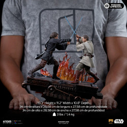 Figurine officielle de Anakin vs. Obi Wan en résine mesurant environ 34 centimètres de haut, à l'échelle 1/10. Elle est issue de la collection Art Scale. Le fabricant est Iron Studios.