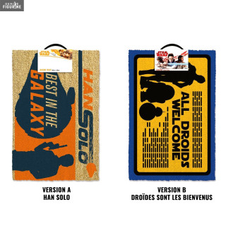 La galaxie est peuplée de créatures en tout genre donc certaines que l'on peut découvrir dans Star Wars. Pour l'entrée de votre maison, vous avez le choix entre deux paillassons différents. La version A représente Han Solo et le faucon millénium ainsi que l'inscription Best in the Galaxy, tandis que la version B nous montre les silhouettes de BB-8, R2-D2 et C3-PO nous indiquant que tous les droïdes sont les bienvenus.