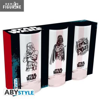 Pack de verres de Star Wars. Ils mesurent environ 14 centimètres de haut, pour un diamètre de 6 cm. Leur contenance est de 29 cl et ils résistent à plus de 700 lavages au lave-vaisselle. Le fabricant est ABYstyle.