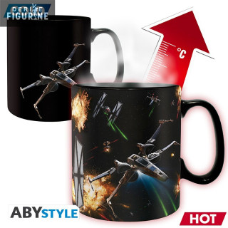Plongez dans l’univers de Star Wars à n’importe quel moment de la journée, avec votre boisson chaude. Un X-Wing apparaît de chaque côté de la tasse, après réaction au contact du liquide chaud, une planète apparaît derrière le premier X-wing, et derrière le second on peut voir apparaître les TIE fighter en pleine bataille.