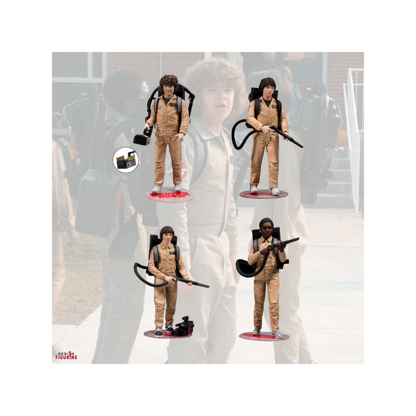 Stranger Things est une série Netflix nous lançant dans une sombre histoire se déroulant à Hawkins. Will Byers, Mike Wheeler, Dustin Henderson et Lucas Sinclair font parties des personnages principaux de l'aventure et on les découvre ici déguisés avec les costumes des célèbres Ghostbusters alias S.O.S Fantômes. Alors que Will est toujours malade, les garçons vont tout de même arriver à passer un bon moment grâce à la soirée d'Halloween de la ville de Hawkins. Le pack est donc composé de quatre figurines.