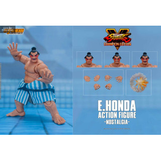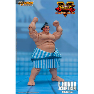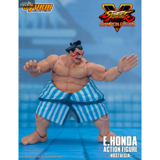 Figurine officielle de Edmond Honda mesurant environ 18 centimètres de haut, à l'échelle 1/12. Le fabricant est Storm Collectibles.