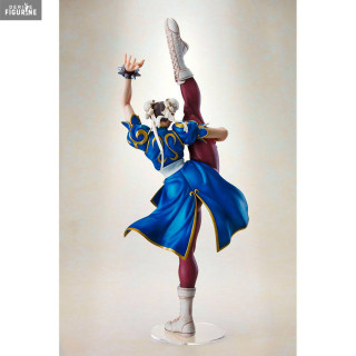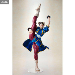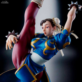 Chun-Li est une combattante de Street Fighter née en Chine et son père n'est autre que maître Li Laotsin. C'est très jeune qu'elle va commencer à intéresser aux arts martiaux et en apprendra plusieurs avant de créer son propre style de combat. Elle porte sa tenue classique qui est une qipao bleue et des collants bruns, laissant parfaitement apparaître ses muscles et sa pose nous prouve toute l'étendue de ses capacités.