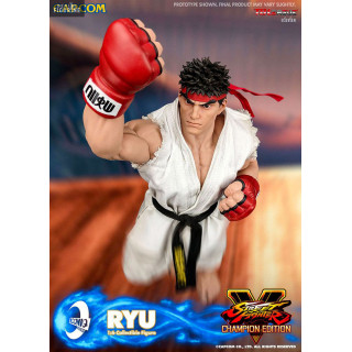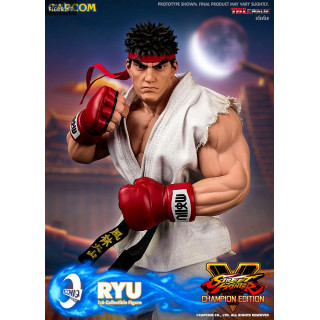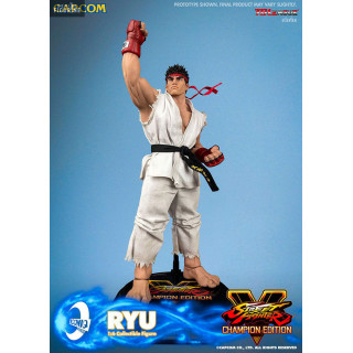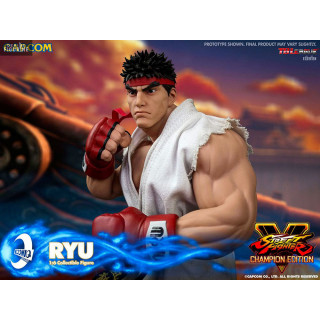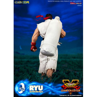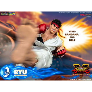 Figurine officielle de Ryu en PVC mesurant environ 30 centimètres de haut à l'échelle 1/6. Le fabricant est Iconiq Studios.