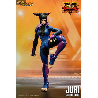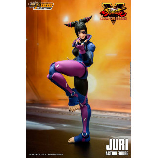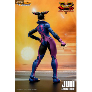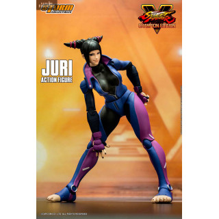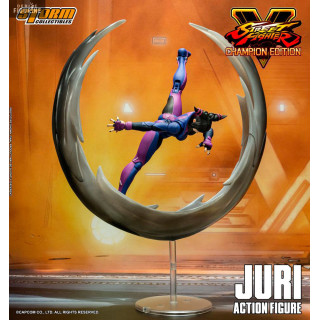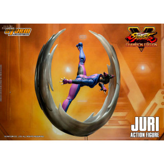 Depuis très jeune, Juri Han pratique le taekwondo et en devient une praticienne légitime alors qu'elle n'a que 15 ans. Elle a survécu à une attaque de Bison contre ses parents qui ont perdu la vie, et depuis ce jour, elle ne rêve que d'une chose : se venger. C'est également à ce moment qu'elle a perdu son œil gauche. Ici, vous pouvez l'exposer dans de nombreuses poses puisqu'elle possède des articulations, parties interchangeable et effets pour les combats.
