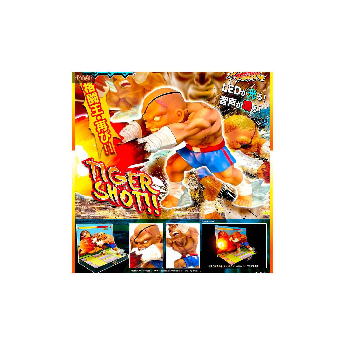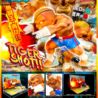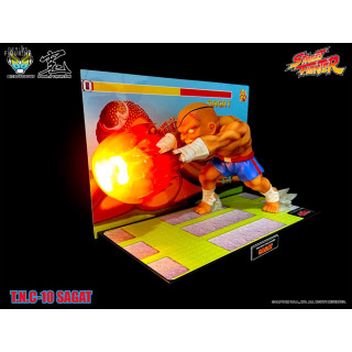 Street Fighter s'offre cette somptueuse figurine diorama du combattant Sagat, un spécialiste de la box Thaïlandaise dans la célèbre franchise de jeux vidéo de Capcom. Il est arrivé dans la série en 1987 où il était un personnage du côté des méchants puisqu'il obéissait à Bison. Cette figurine est non seulement lumineuse, mais aussi sonore. Pour cela, vous aurez besoin trois piles AAA (non incluses).