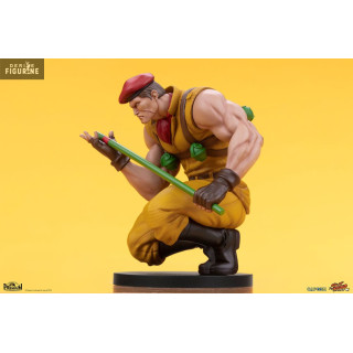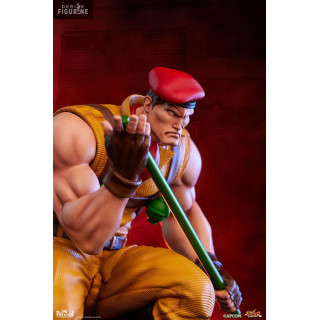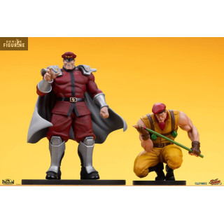 Figurine officielle de M. Bison & Rolento en PVC mesurant environ 21 centimètres de haut, à l'échelle 1/10. Le fabricant est Premium Collectibles Studio.