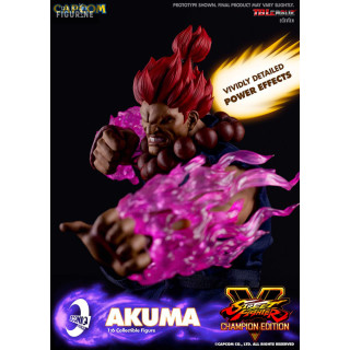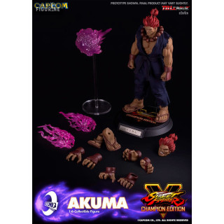 Figurine officielle de Akuma en PVC mesurant environ 30 centimètres de haut à l'échelle 1/6. Le fabricant est Iconiq Studios.
