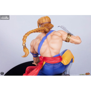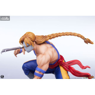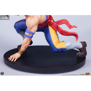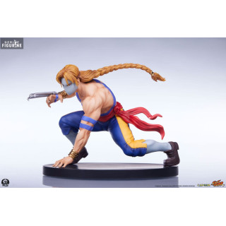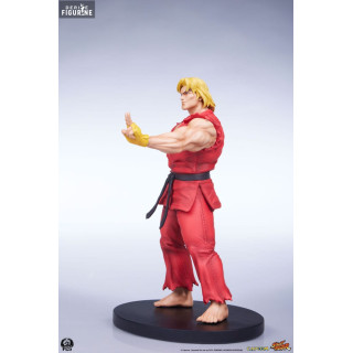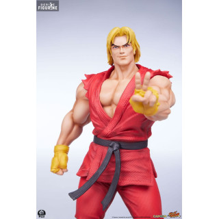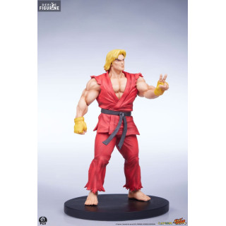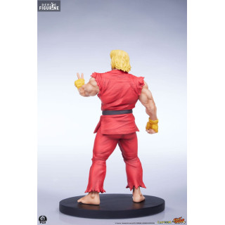 Ken Masters, connu pour son style de combat flamboyant et sa rivalité amicale avec Ryu, est l'un des personnages principaux de Street Fighter. Mesurant environ 18 cm de haut, 10 cm de large et 8 cm de profondeur, cette figurine de Ken le représente dans sa tenue de karaté rouge caractéristique, prêt à lancer une attaque dévastatrice. Les détails sculptés, des muscles saillants à l'expression déterminée sur son visage, rendent hommage à l'iconographie classique du personnage. La résine utilisée assure une finition de haute qualité, tandis que la peinture précise met en valeur chaque détail de son costume et de ses accessoires.