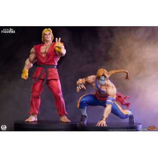 Figurines officielles de Ken (~ 18 x 10 x 8 cm) & Vega (~ 10 x 10 x 10 cm) en résine, à l'échelle 1/10. Elles sont issues de la collection Street Jam. Le fabricant est Premium Collectibles Studio.