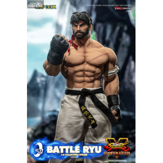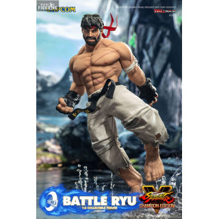 Ryu est sans aucun doute l'un des personnages les plus emblématiques de la saga "Street Fighter". Il incarne l'archétype du combattant déterminé, toujours en quête d'amélioration et de perfection de son art martial, l'Ansatsuken. Depuis ses premières apparitions dans les jeux vidéo, Ryu a évolué non seulement en tant que combattant, mais aussi en tant que personnage, portant avec lui les cicatrices de ses nombreuses batailles, tant physiques qu'émotionnelles. Dans cette version "Battle Ryu" issue du jeu "Street Fighter V: Champion Edition", nous retrouvons Ryu dans une posture intense et réaliste, marquée par les combats qu'il a traversés. Son expression déterminée, ses muscles saillants et ses vêtements déchirés témoignent de son dévouement sans faille à l'Ansatsuken.