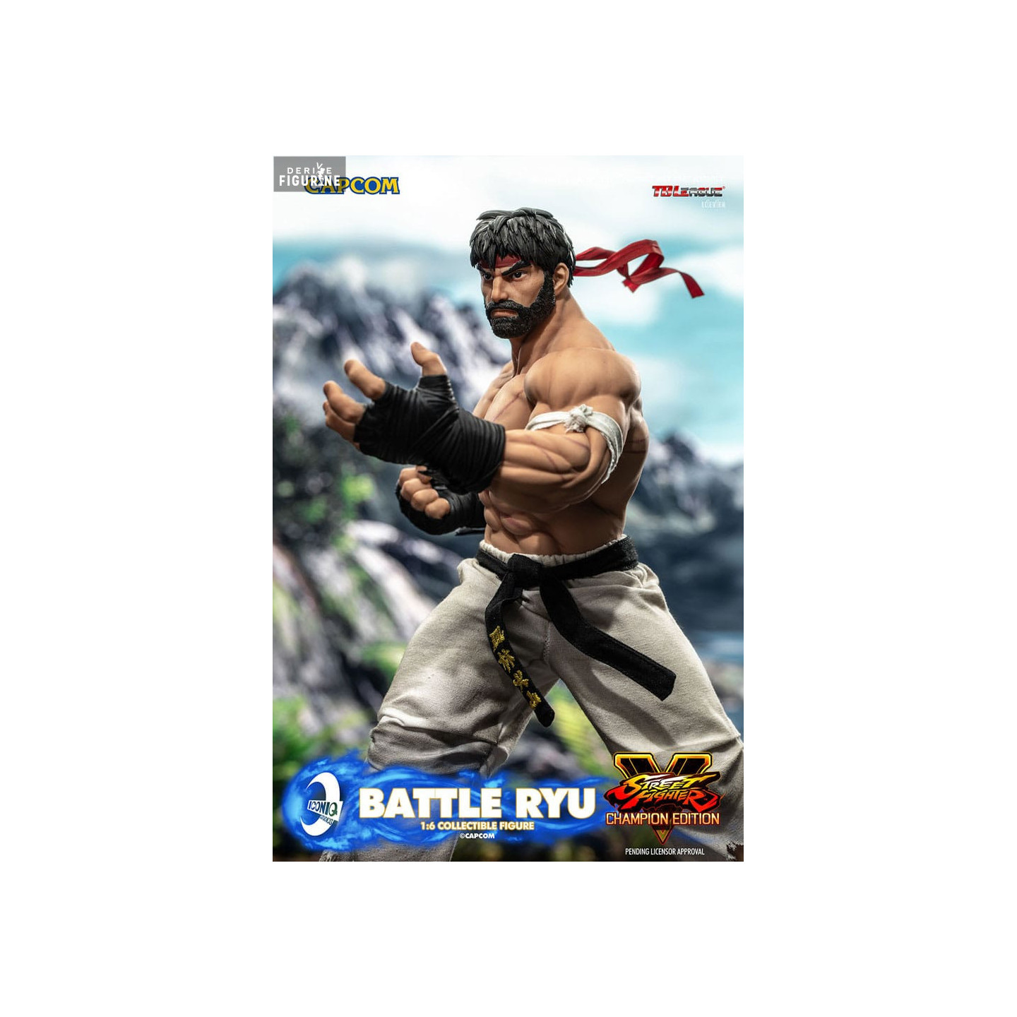 Figurine officielle de Battle Ryu en PVC mesurant environ 30 centimètres de haut à l'échelle 1/6. Le fabricant est Iconiq Studios.