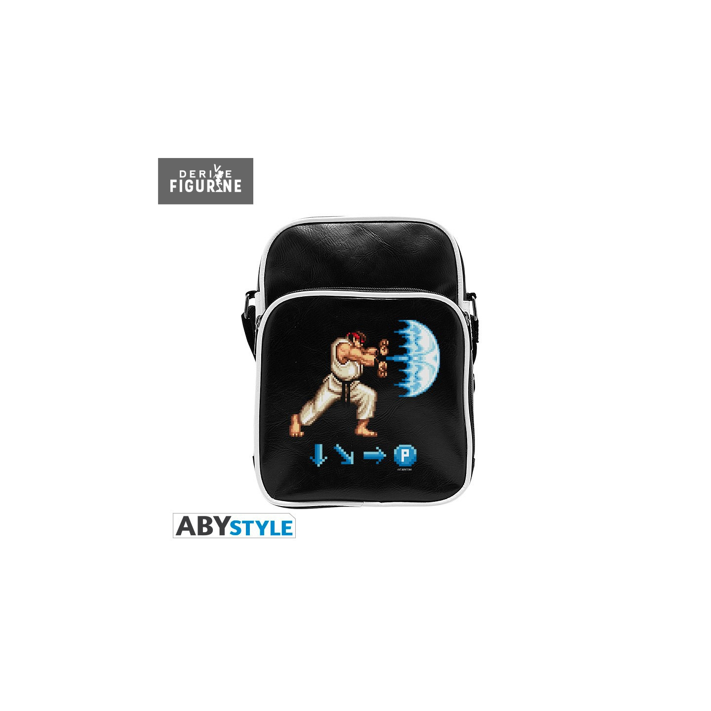 Sacoche de Street Fighter en polyuréthane qui mesure environ 27x20 centimètres. Elle possède une poche extérieure zippée, une fermeture éclair pour la poche principale et une sangle réglable. Le fabricant est ABYstyle.