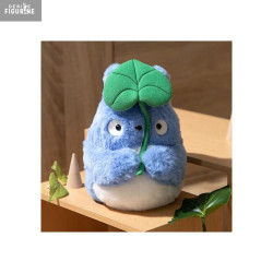 Peluche officielle de Medium Totoro with leaf, Nakayoshi en 100% polyester mesurant environ 20 centimètres de haut. Le fabricant est Sun Arrow.