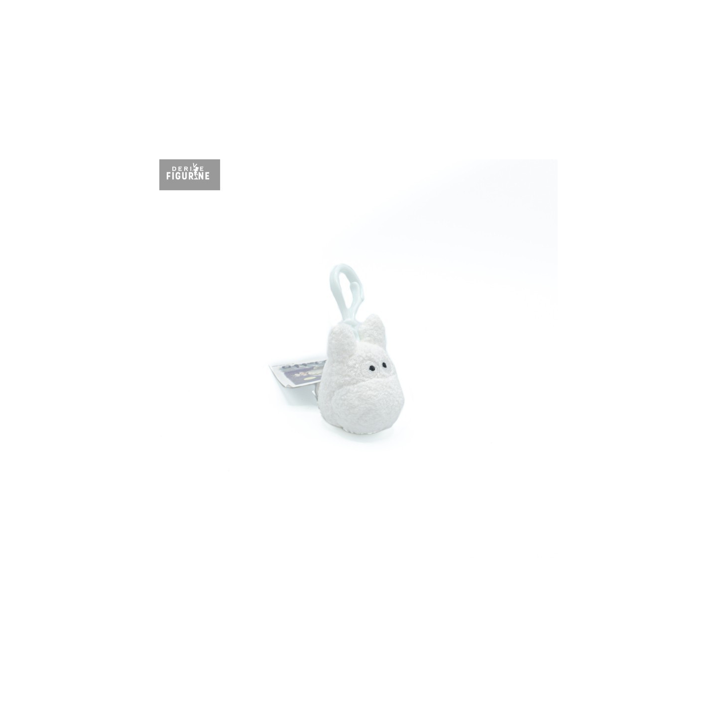 Porte-clés officiel de Totoro blanc en 100% polyester mesurant environ 4,5 x 6 centimètres. Le fabricant est Sun Arrow.