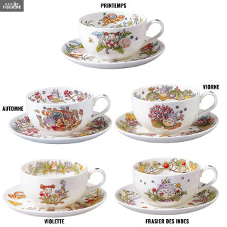 Tasse officielle de Mon voisin Totoro au choix entre cinq versions (Printemps, Automne, Viorne, Violette ou Fraisier des Indes) en porcelaine à la cendre d'os qui a une contenance de 32,5 cl. Le fabricant est Benelic.