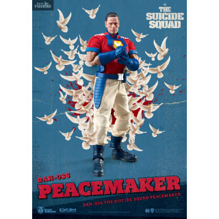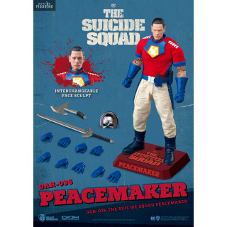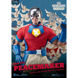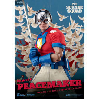 Figurine officielle de Peacemaker mesurant environ 20 centimètres de haut, à l'échelle 1/9. Elle est issue de la collection Dynamic 8ction Heroes. Le fabricant est Beast Kingdom.