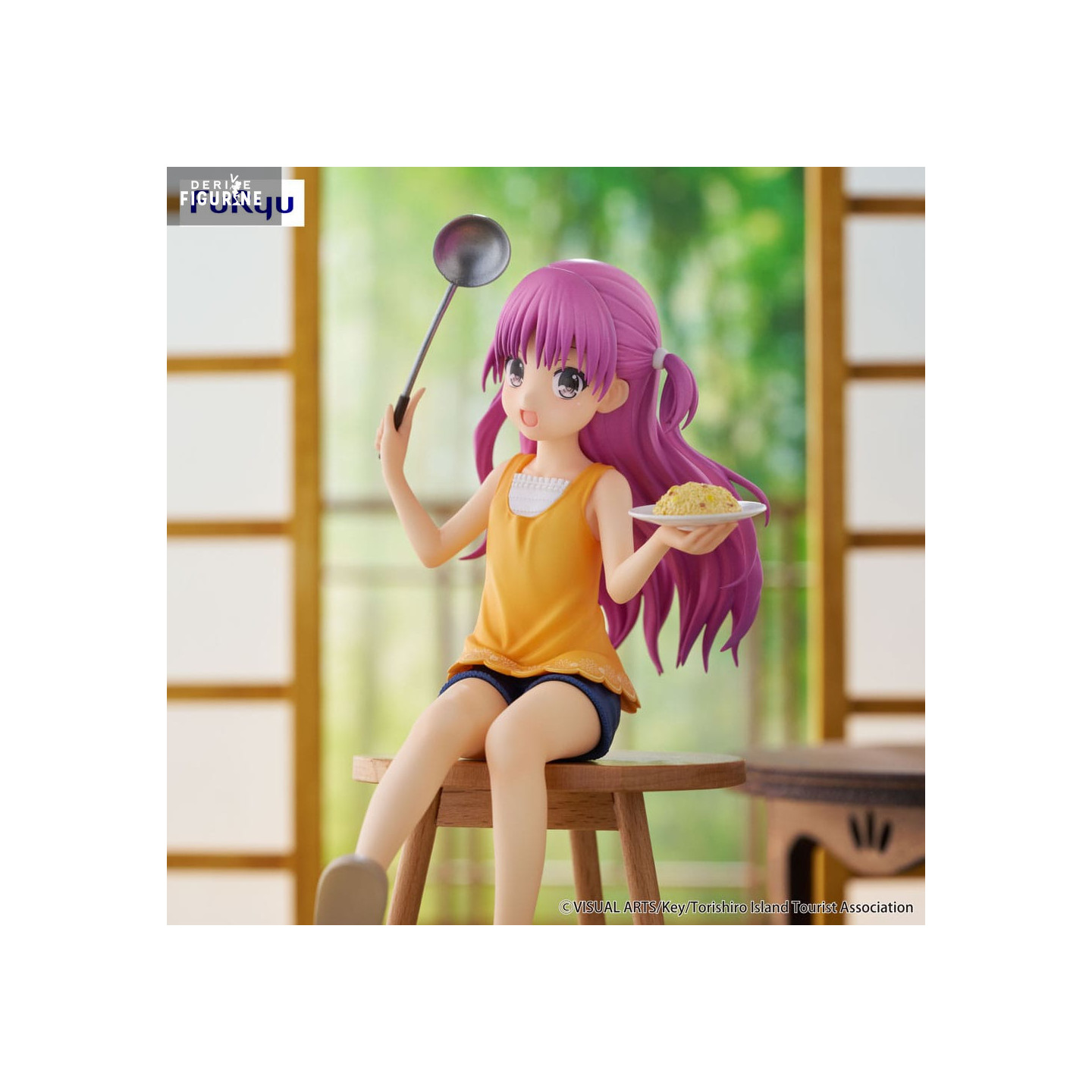 Toute en bonne humeur, assise sur un tabouret, cuillère à la main et plat de curry sur les genoux, Umi Kato illumine la collection Noodle Stopper de FuRyu avec une ambiance simple, chaleureuse et pleine de vie. Originaire du visual novel Summer Pockets développé par Key / Visual Arts, Umi apparaît ici dans une tenue décontractée, en plein moment de cuisine à la maison.