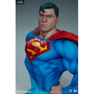 Buste officiel de Superman en résine mesurant environ 27 x 20 x 10 centimètres. Le fabricant est Sideshow Collectibles.