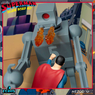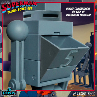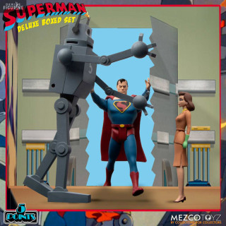 Si vous aviez adoré Superman The Mechanical Monsters à l'époque, vous allez être heureux de pouvoir redécouvrir cet univers avec ce pack de figurines. Il contient non seulement Superman avec son costume de super-héros, mais aussi en tenue de civil en Clark Kent, avec à ses côté Loïs Lane et le Mechanical Monster Number 5. De plus, il y a plusieurs décors pour vous permettre de les exposer comme bon vous semble.