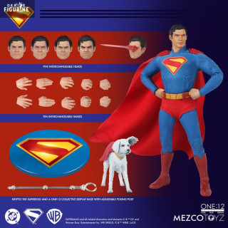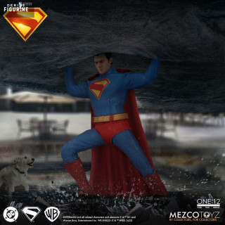 Figurine officielle de Superman mesurant environ 17 centimètres de haut, à l'échelle 1/12. Elle est issue de la collection One:12. Le fabricant est Mezco Toys.