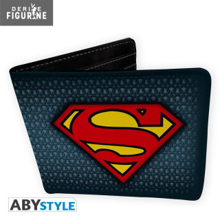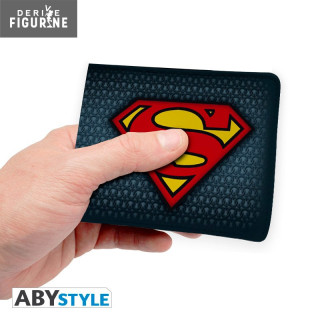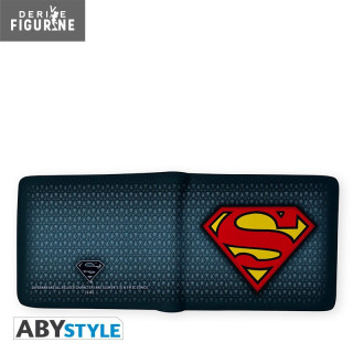 Portefeuille de Superman en vinyle qui mesure environ 11x9,5 centimètres fermé, avec plusieurs rangements pour les cartes, les billets et les pièces de monnaie. Le fabricant est ABYstyle.