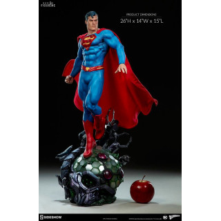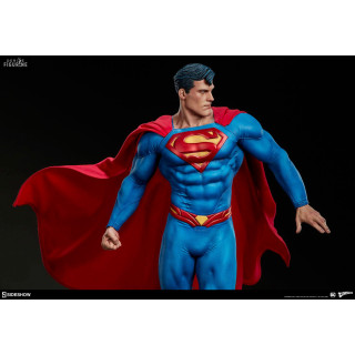 Figurine officielle de Superman en résine, mesurant environ 66x35x38 centimètres. Le fabricant est Sideshow Collectibles.