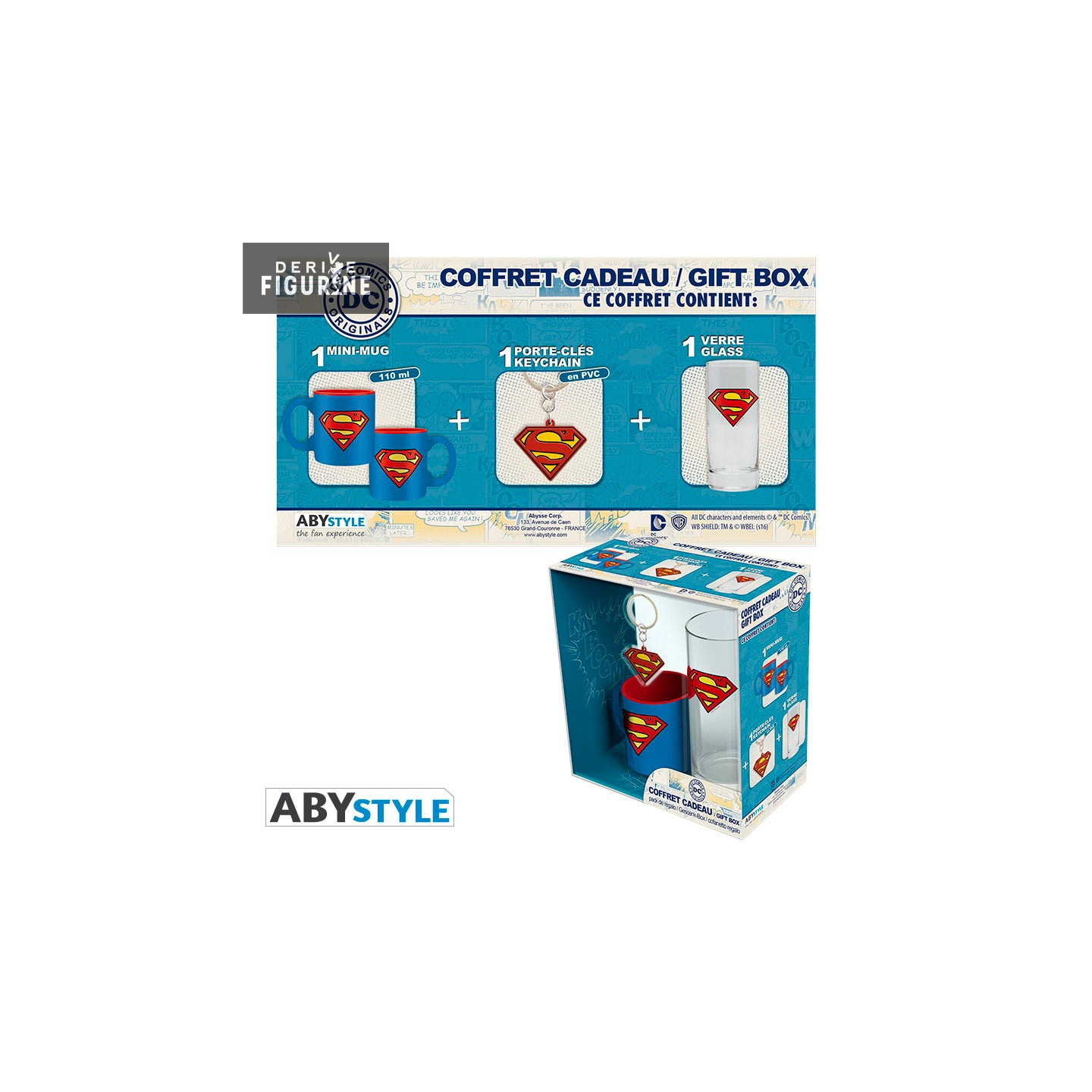 Coffret cadeau de DC Comics qui contient trois articles différents (voir description). Le fabricant est ABYstyle.