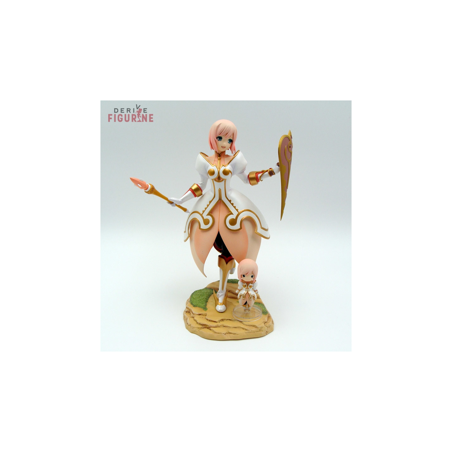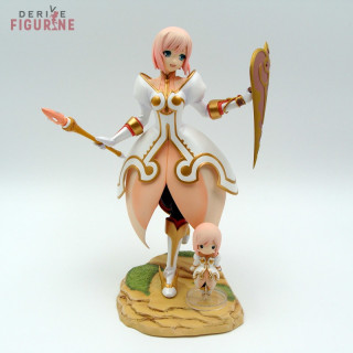 Figurines d'occasion et officielles d'Estellise Sidos Heurassein et sa chibi en PVC d'environ 20 et 5 centimètres de haut à l'échelle 1/8. Contient tous les accessoires : main de rechange, bouclier et arme. Il s'agit d'objets d'occasion en parfait état. Le fabricant est Alter, vendu avec boîte en assez bon état, mais un peu cabossée sur le dessus.