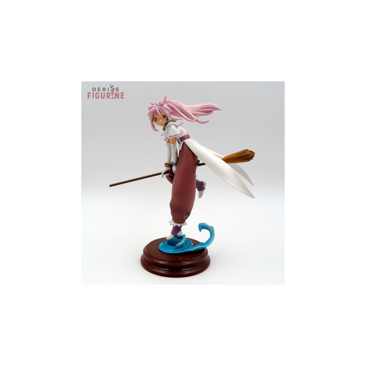 Figurine d'occasion et officielle d'Arche Klaine en Cold Cast d'environ 22 centimètres de haut à l'échelle 1/8. Arche se prépare à faire un tour sur son balai. Il s'agit d'un objet d'occasion en parfait état. Le fabricant est Kotobukiya, vendu avec boîte en mauvais état. Étant entièrement en plastique, elle est cassée à plusieurs endroits.