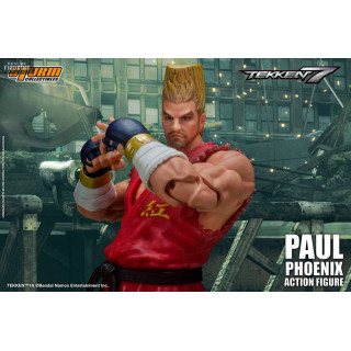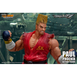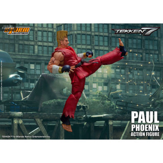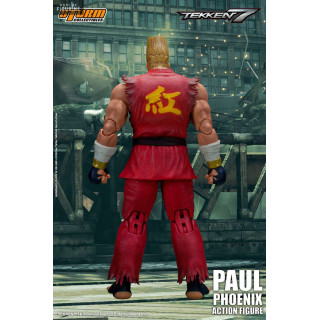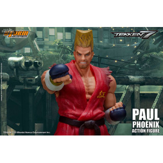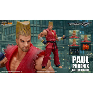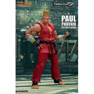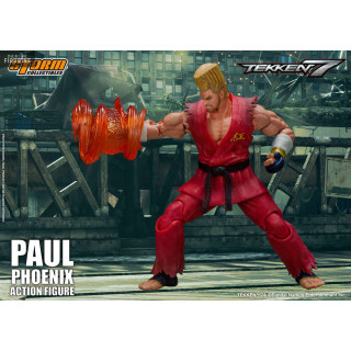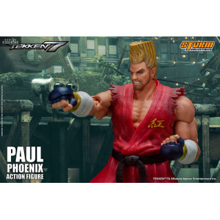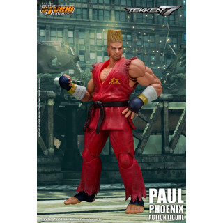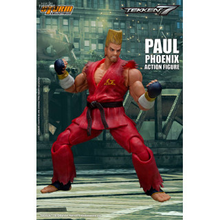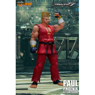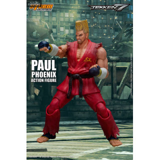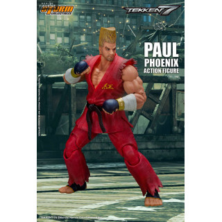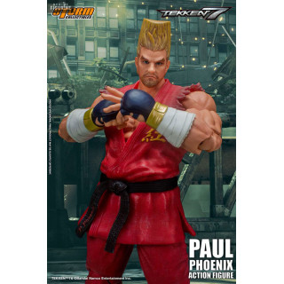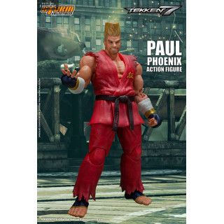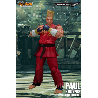 Figurine officielle de Paul Phoenix mesurant environ 18 centimètres de haut, à l'échelle 1/12. Le fabricant est Storm Collectibles.