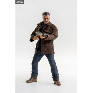 Figurine officielle de T-800 mesurant environ 16 centimètres de haut, à l'échelle 1/12. Le fabricant est ThreeZero.
