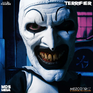 Poupée officielle de Art the Clown avec vêtements en tissu mesurant environ 25 centimètres de haut. Elle est issue de la collection MDS Mega Scale Art the Clown with Sound. Le fabricant est Mezco Toys.
