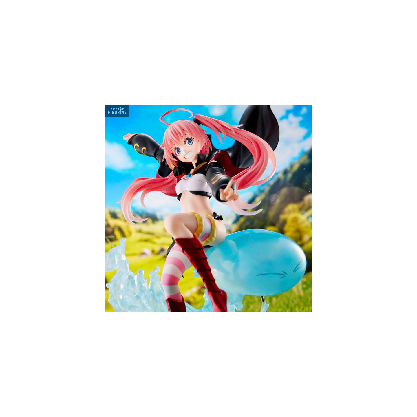 Cette figurine de Milim Nava est super cool, car en plus de la représenter toujours aussi débordante d'énergie, elle est accompagnée de Rimuru sous sa forme de slime. Il y a même une grosse éclaboussure sous eux qui ajoute encore plus de dynamisme à cette statuette.