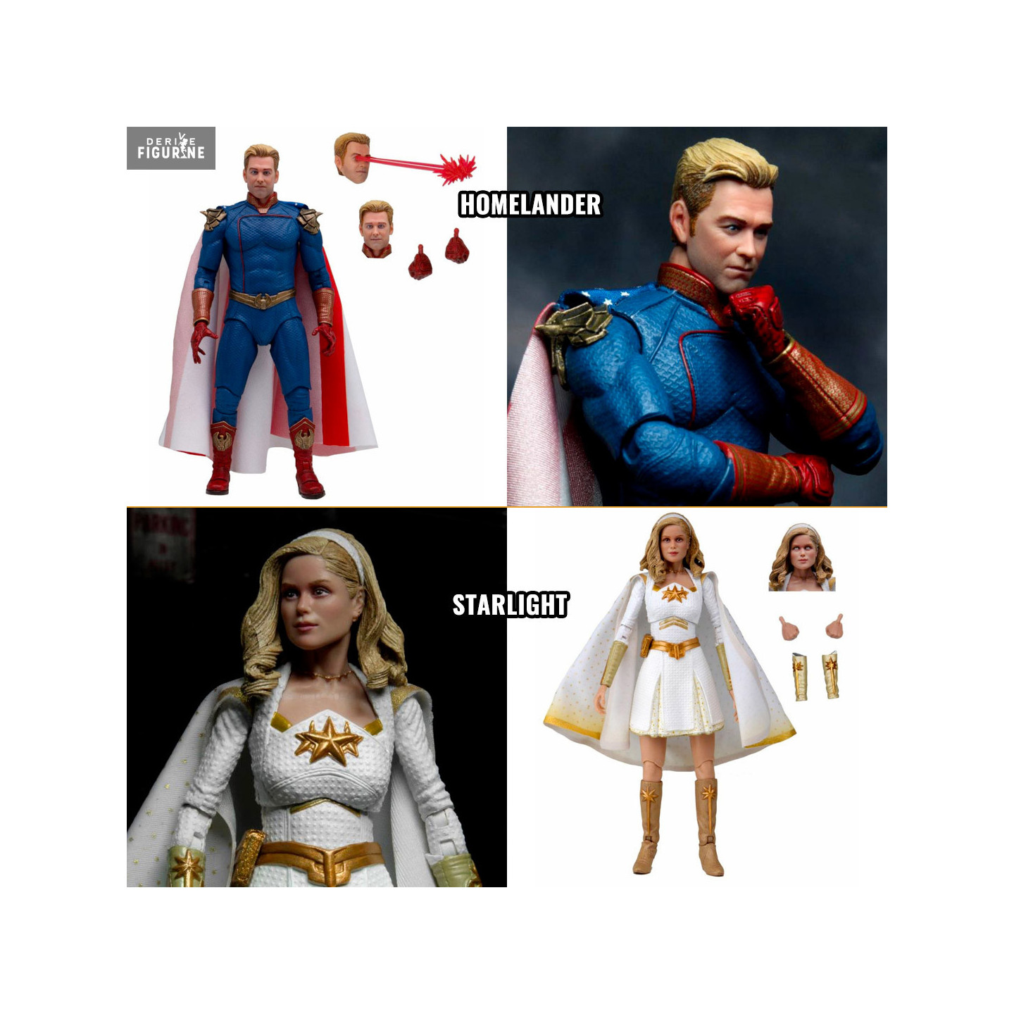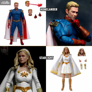 Vous avez ici le choix entre deux figurines Ultimate de la série The Boys ! D'un côté, on trouve le leader des Sept qui n'est autre que le grand Homelander, un héros que l'on peut comparer à un dieu mais qui a de bien sombres secrets... ou bien alors, vous pouvez opter pour Starlight qui est aussi une membre des Sept mais qui est une idéaliste et une jeune femme qui rêvait de rejoindre ce groupe...