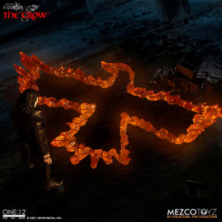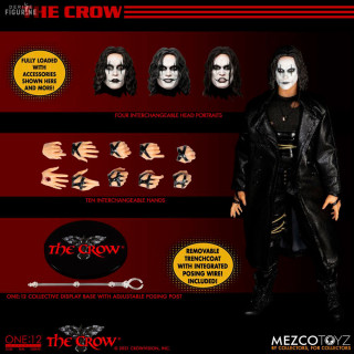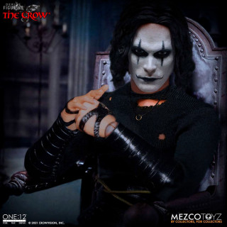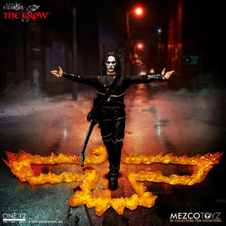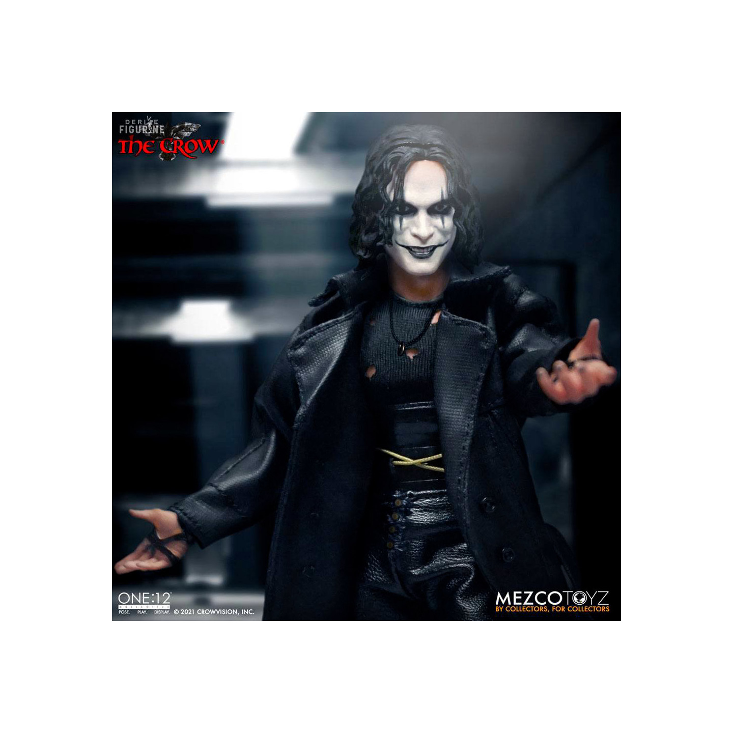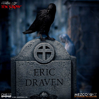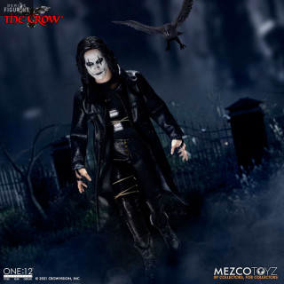 Figurine officielle de Eric Draven mesurant environ 17 centimètres de haut, à l'échelle 1/12. Elle est issue de la collection One:12. Le fabricant est Mezco Toys.