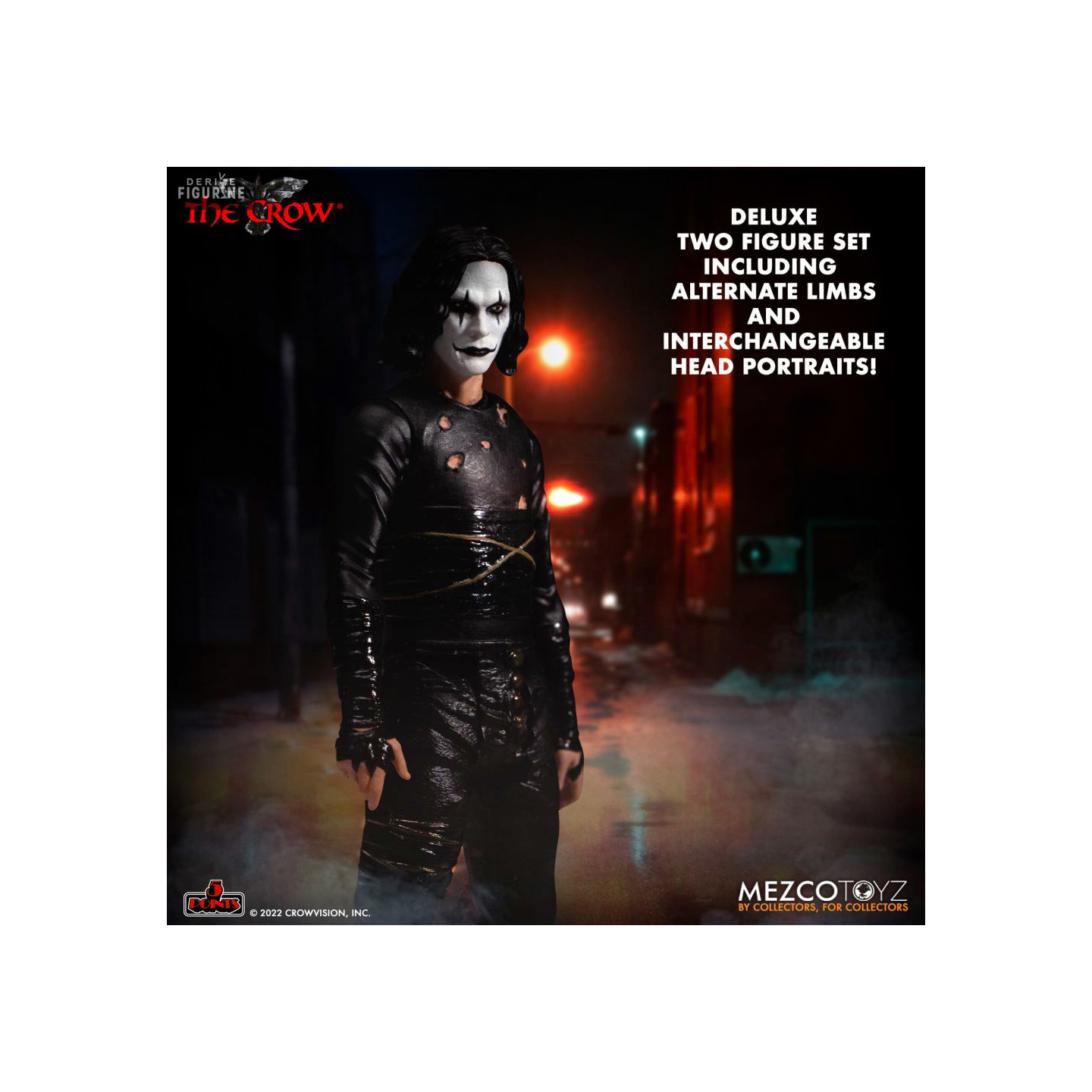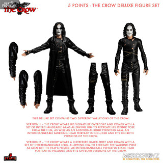Ce pack Deluxe Box Set de figurines figurines The Crow de la collection 5 Points vous propose 2 figurines de Eric Draven, l'un porte sa veste emblématique tandis que le second a un T-Shirt noir, ils sont vendus avec des accessoires et parties du corps pour toujours plus de possibilité d'exposition !
