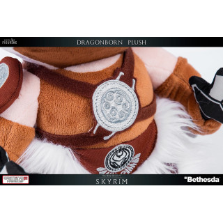 Dragonborn est le personnage que vous incarnez dans le jeu vidéo The Elder Scrolls V Skyrim. Ici, il est représenté sous forme de peluche et même si ce look lui donne un côté moins féroce qu'en temps normal, il est tout de même très bien fait et possède de nombreux détails.