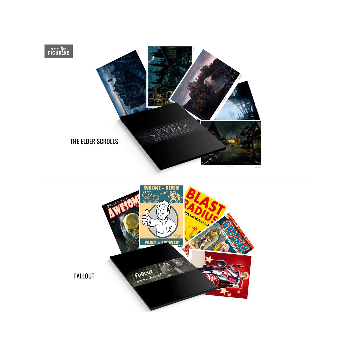 Pack 5 lithographies officielles au choix entre The Elder Scrolls ou Fallout mesurant environ 35x28 centimètres. Édition limitée à 995 exemplaires en impression haute qualité (300GM). Le fabricant est FaNaTtik.
