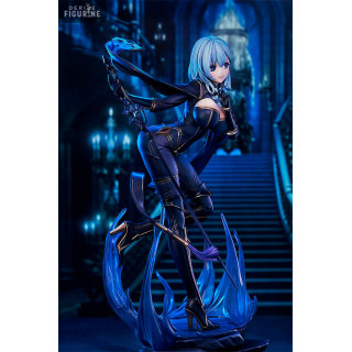 Beta, le deuxième membre de Shadow Garden et l'un des "Seven Shadows" originaux, prend vie dans cette impressionnante figurine inspirée de la série de light novels "The Eminence in Shadow". La figurine représente Beta, qui se cache derrière son identité publique en tant que Natsume Kafka, une autrice renommée d'histoires "originales" qui sont en réalité des récits provenant de la Terre, dont elle se sert pour établir des connexions et recueillir des informations. Cette figurine saisissante capture l'apparence de Beta, une magnifique elfe avec des cheveux argentés tombant en une tresse sur son épaule. Ses yeux bleus reflètent à la perfection son charme mystérieux. Beta porte le costume distinctif de Shadow Garden, composé d'une combinaison moulante noire à décolleté plongeant qui met en valeur sa poitrine, ornée d'élégants détails dorés sur la poitrine, les épaules, les bras et la taille. Ses manches noires, les brassards assortis, et les gants noirs complètent l'ensemble. Une ceinture noire avec des boucles dorées et des plaques décoratives dorées soulignent sa taille. Ses leggings gris ardoise sont également ornés de bordures dorées. Ses bottes montent le long de ses jambes, décorées de bagues dorées et de finitions dorées. La figurine reflète parfaitement le caractère de Beta, à la fois une grande analyste et une guerrière déterminée. Elle est connue pour sa capacité à rester calme et sophistiquée, même dans les situations les plus tendues. Toutefois, elle peut également laisser éclater ses émotions en privé, ce qui la rend encore plus intrigante. Beta est également un personnage profondément amoureux de son maître, Cid Kagenō. Sa figurine incarne à la perfection son amour et son dévouement envers lui. Cette figurine de Beta est un ajout incontournable pour tout fan de "The Eminence in Shadow" et de l'univers des light novels. Elle capture à la perfection le mystère et l'élégance de ce personnage captivant.